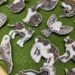 ブローチをメインに制作しております。水彩画風の滲みをインクで表現した色鮮やかな作品と対照的に白プラバンをベースに色味と表情を抑えた物憂げな動物たちの作品が特徴です。