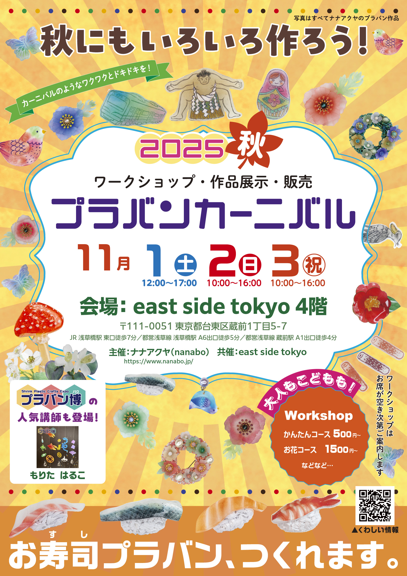 モノづくりのマチ・台東区南部エリアにある東京・蔵前「east side tokyo」さんで、プラバンワークショップを中心としたイベント「プラバンカーニバル」を開催します。