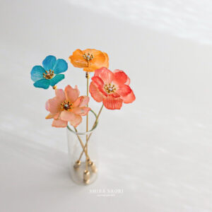 春をイメージした、アネモネ・ネモフィラ・シャクヤク・ポピーの4種類の一輪を1つ選んで、講師と一緒に制作します。