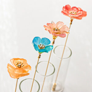 「暮らしに樹脂の花のひとときを」をコンセプトにプラバンで繊細な表情の花々を制作。