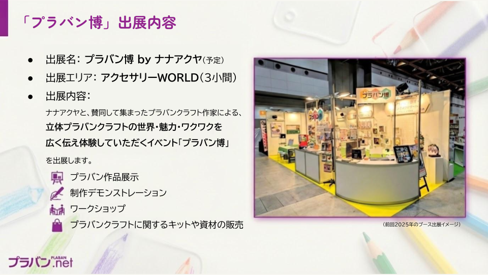 - 出展ブース名: 「プラバン博 by ナナアクヤ」(予定)