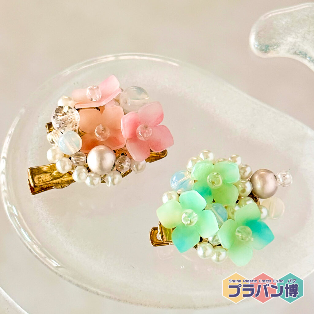 プラバンとビーズで咲かせる「紫陽花のコサージュクリップ」