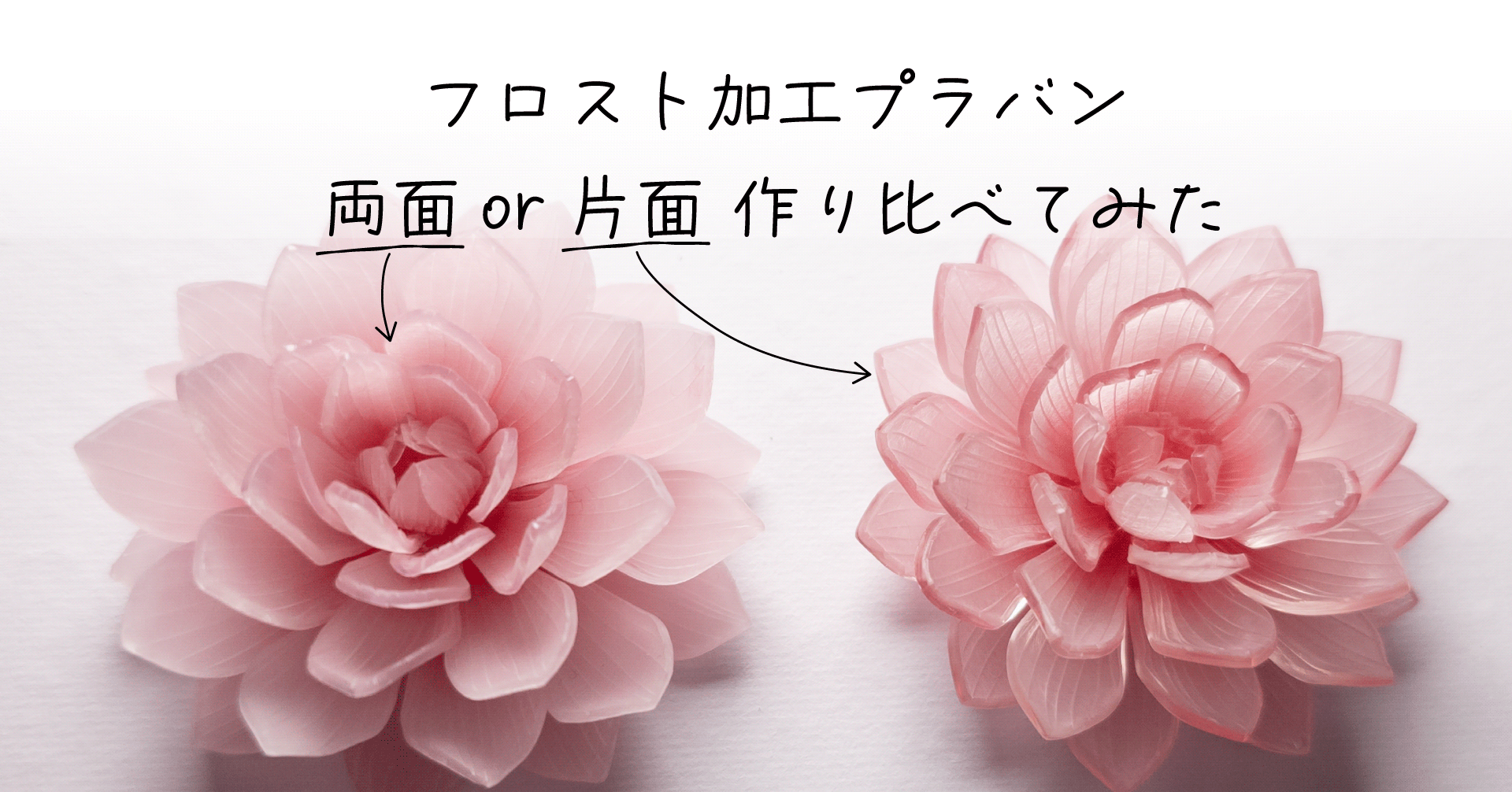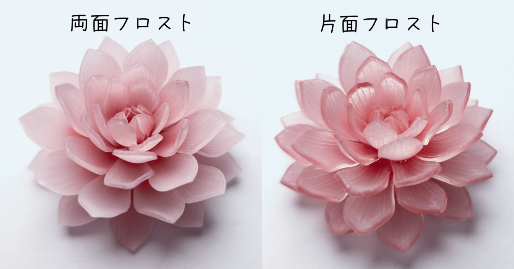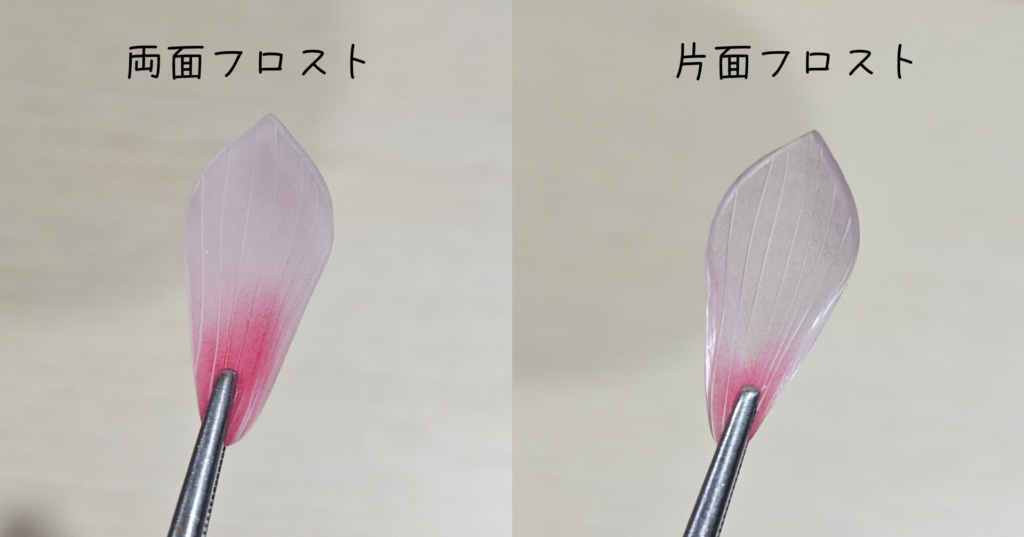 というわけで、ここからは同じ形のお花を、片面フロストと両面フロストで作り比べて、気づいたことをまとめております。